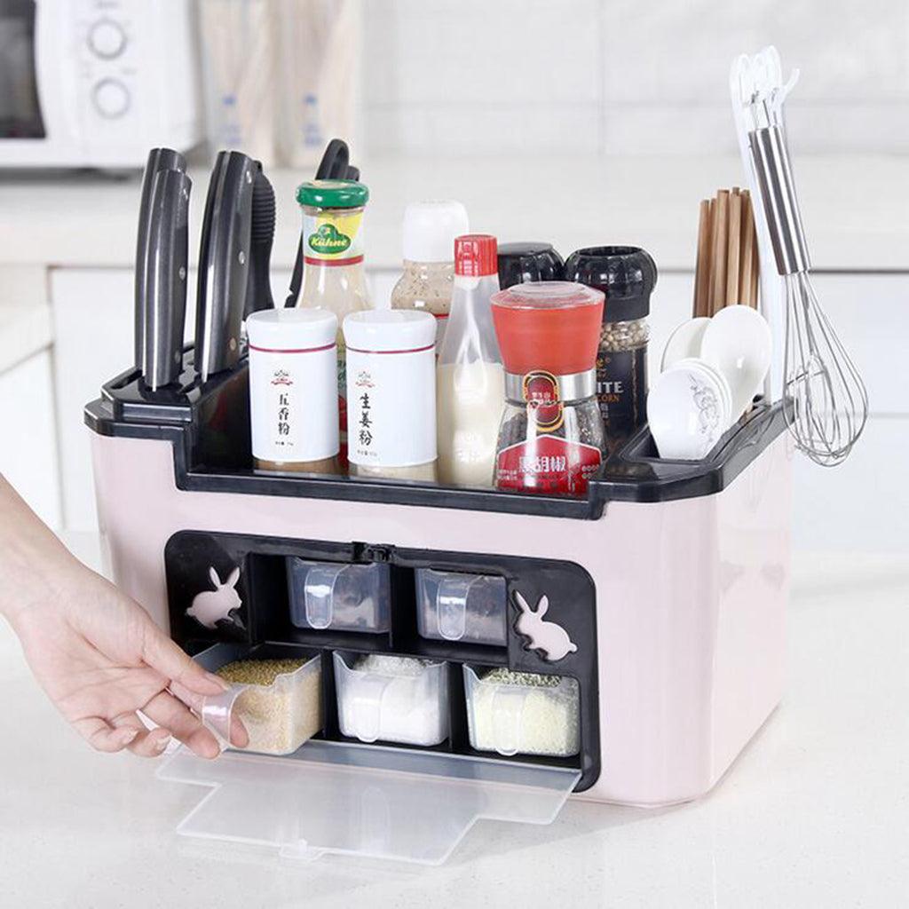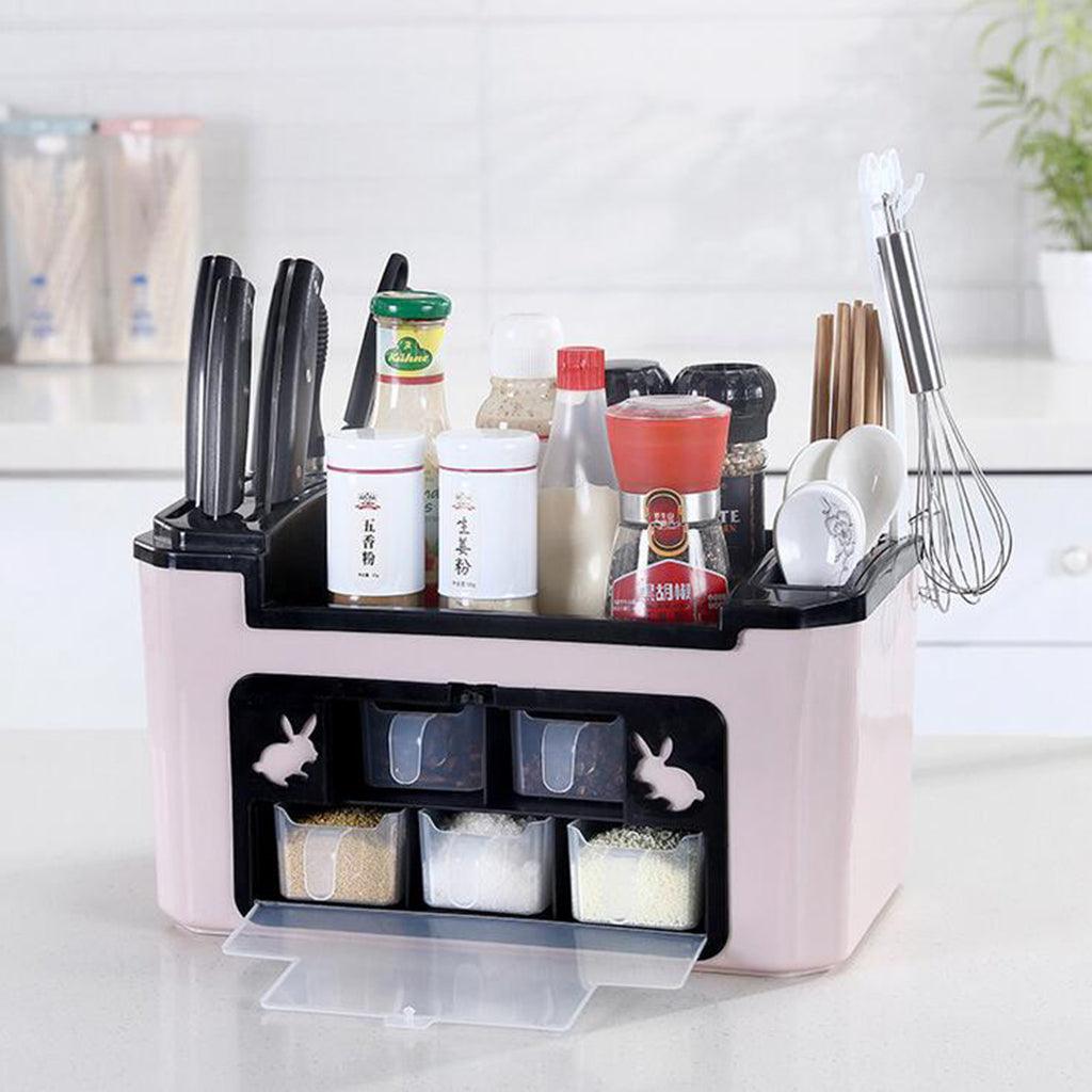 Maxbell Utensils Condiment Knife Storage Rack Seasoning Storage Box Holder Pink