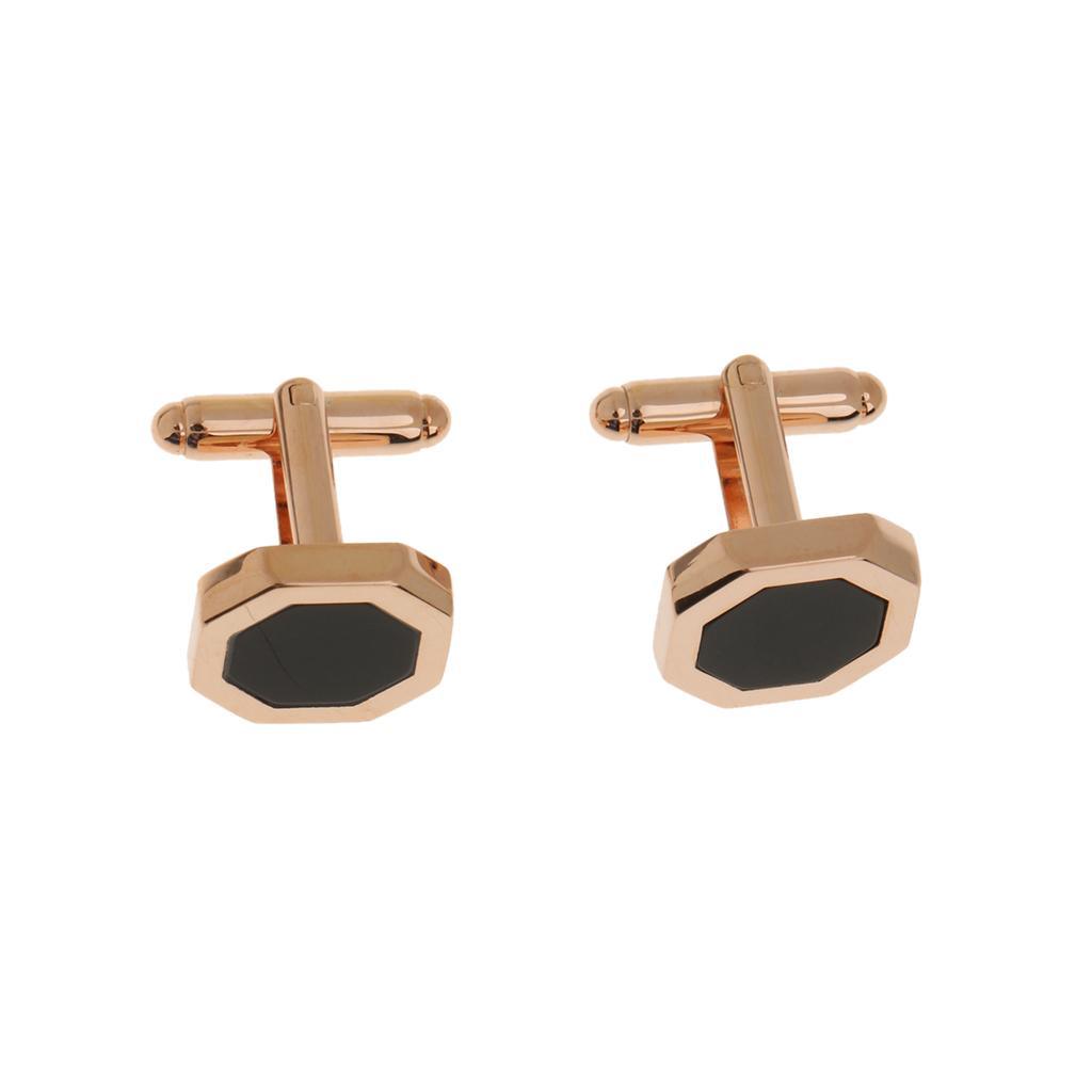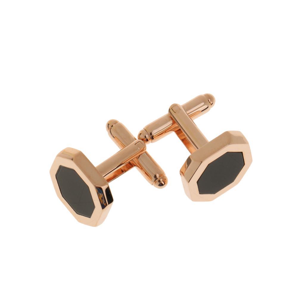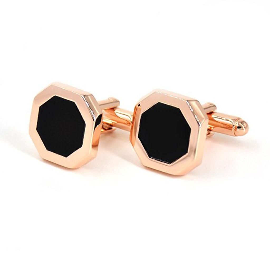 Maxbell Maxbell Vintage Black Agate Cufflink Cuff Link Wedding Men Shirt Accessory Rose Gold