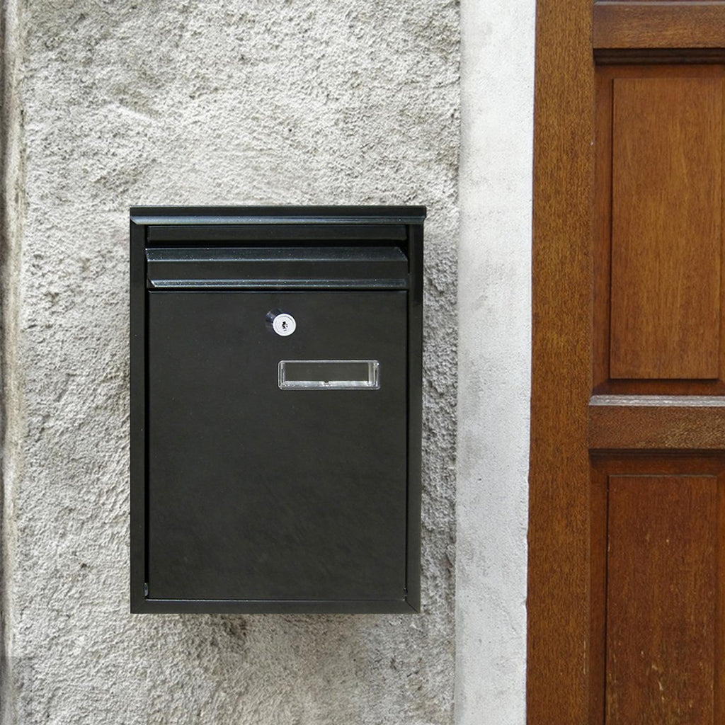 Maxbell Wall Mounted Mailbox Newspaper Holder Box for Gate Home Office Outside House black