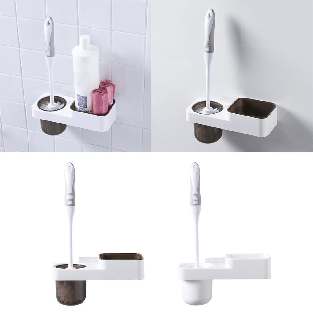 Wall mounted toilet brush set to save space and keep bathroom neat.