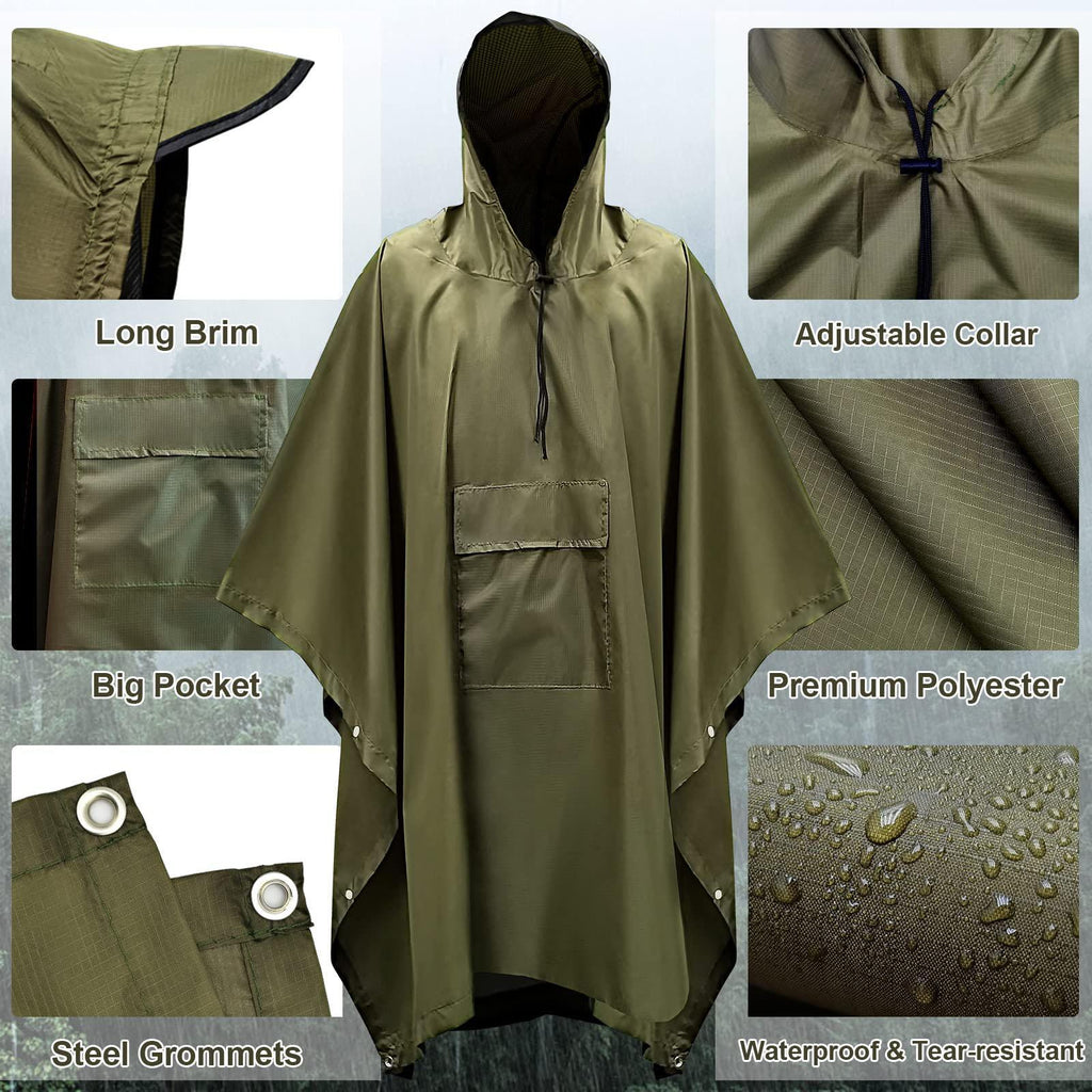 Wide Application: The waterproof poncho is great for Camping, Hiking, Climbing, Fishing, Hunting, and all other outdoor activities.