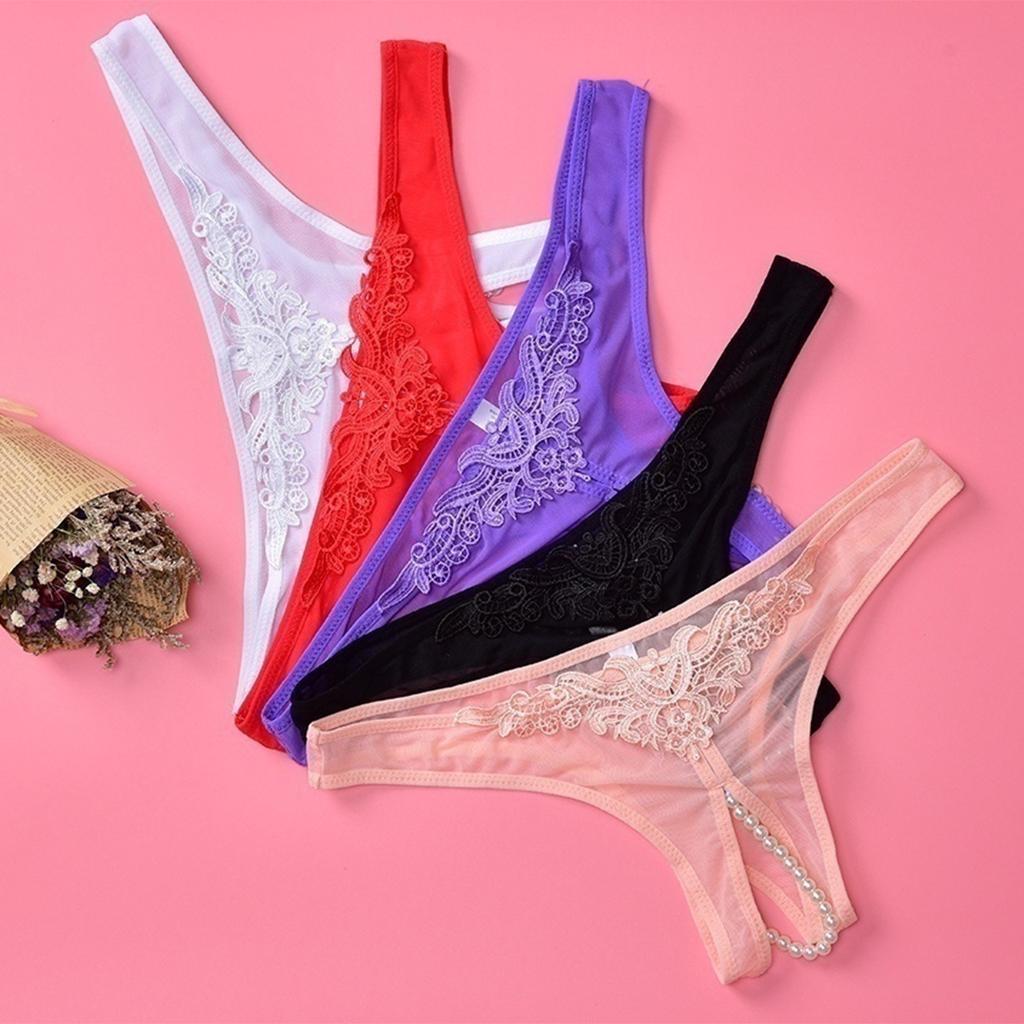 Maxbell Women Sexy Pearl Massage Lingerie Lace Thong G-String Pantiy Briefs White