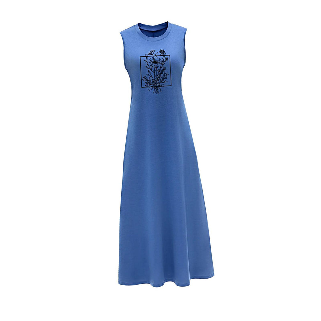 【Features】: Women's dress features sleeveless, round neck, high waist, A line, and long length design, blend of elegance and casual .