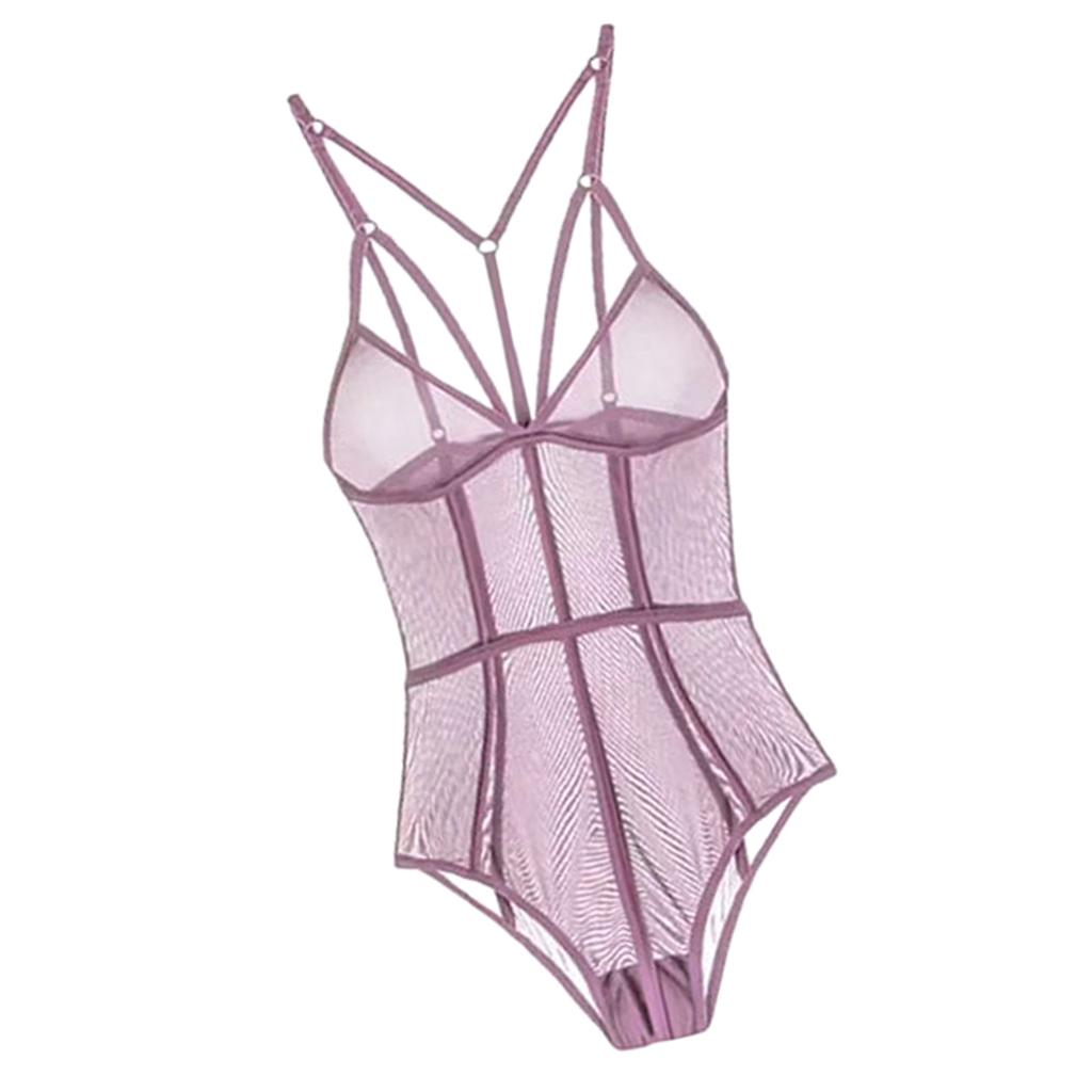 Maxbell Womens Teddy Lingerie Outfits One Piece Lace Bodysuit Sleepwear M Pink