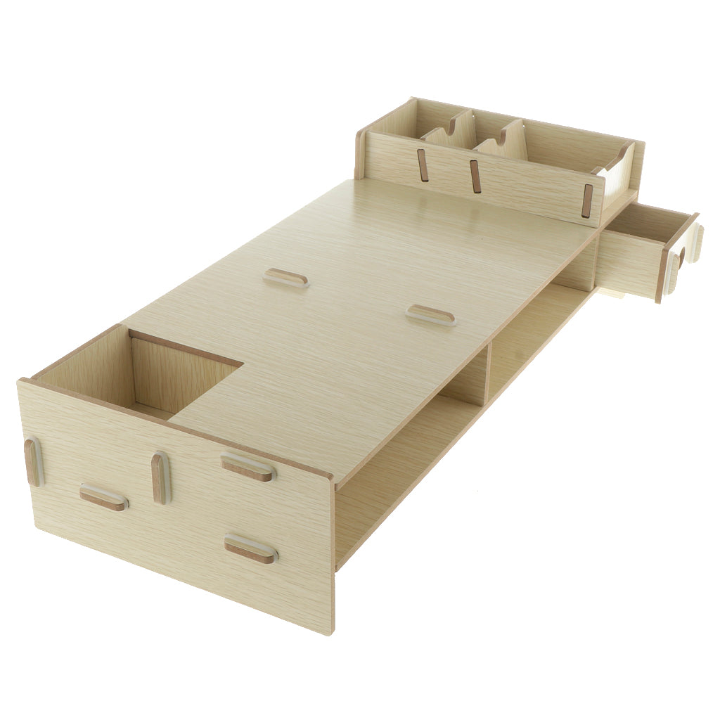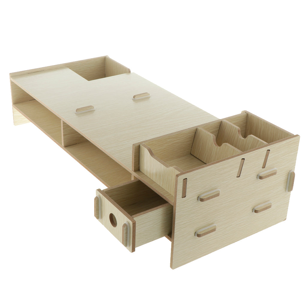 Desktop Manager for Office, School and Home: Computer Display Bracket has two drawers for storing office supplies. The cork behind each drawer is used to fix the drawer. Do not open drawers when closing them. Mobile phones, cups, staplers, clips and other fixed slots, keyboards and mice can be placed below.