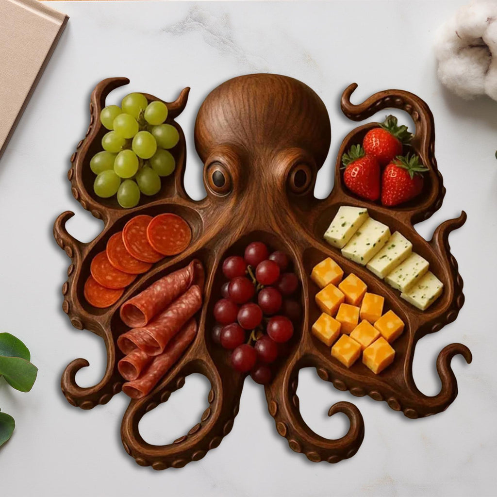 Maxbell Wood Octopus Charcuterie Platter for Family Gatherings Lightweight Versatile 30cmx30cm