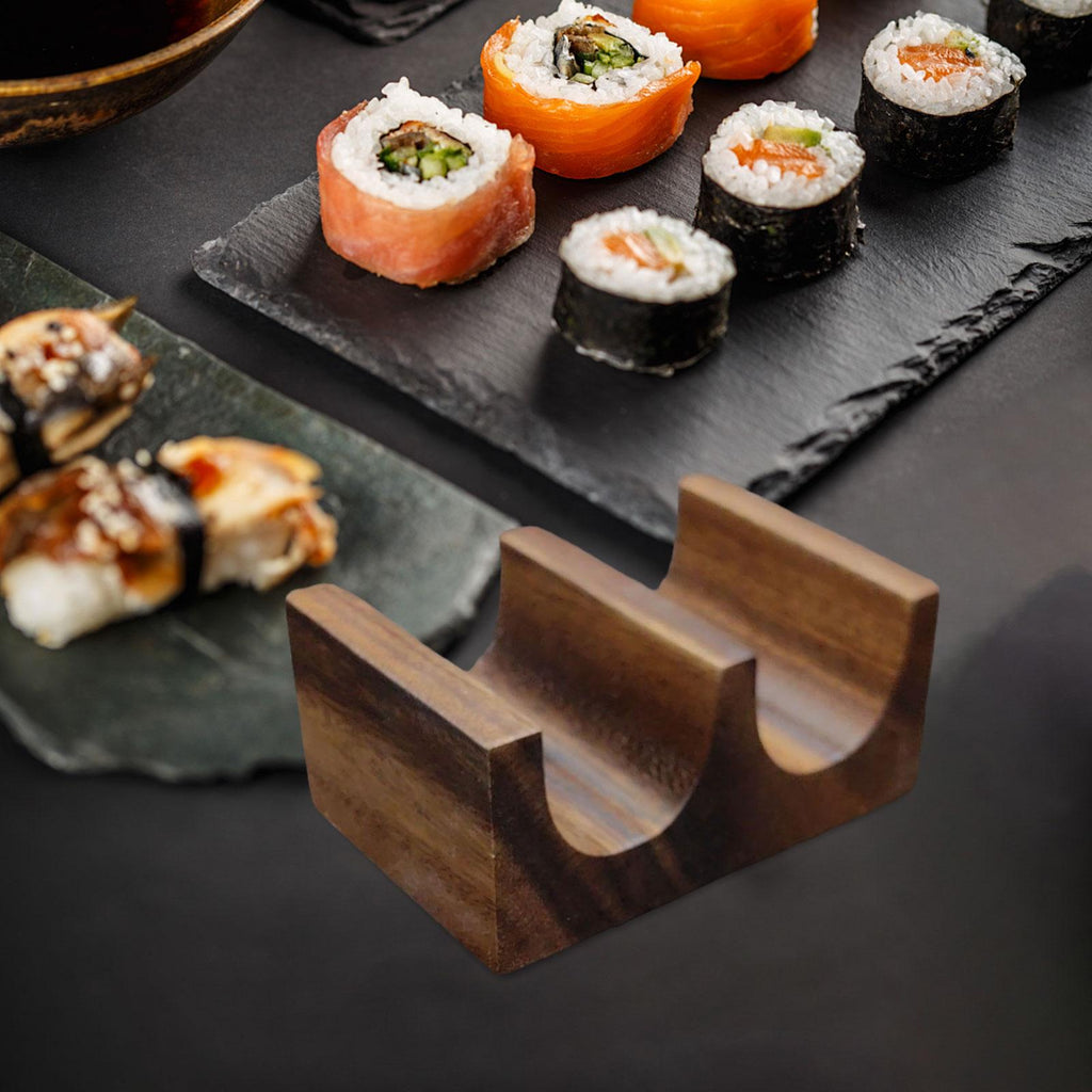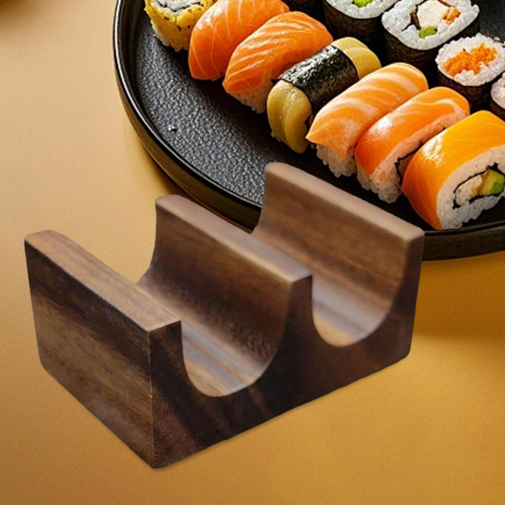 【Design】: Wooden Sushi Tacos Holder Stand provides a way to display your sushi or tacos. Not only holds your food securely but also adds an aesthetic to your dining table or restaurant setting.