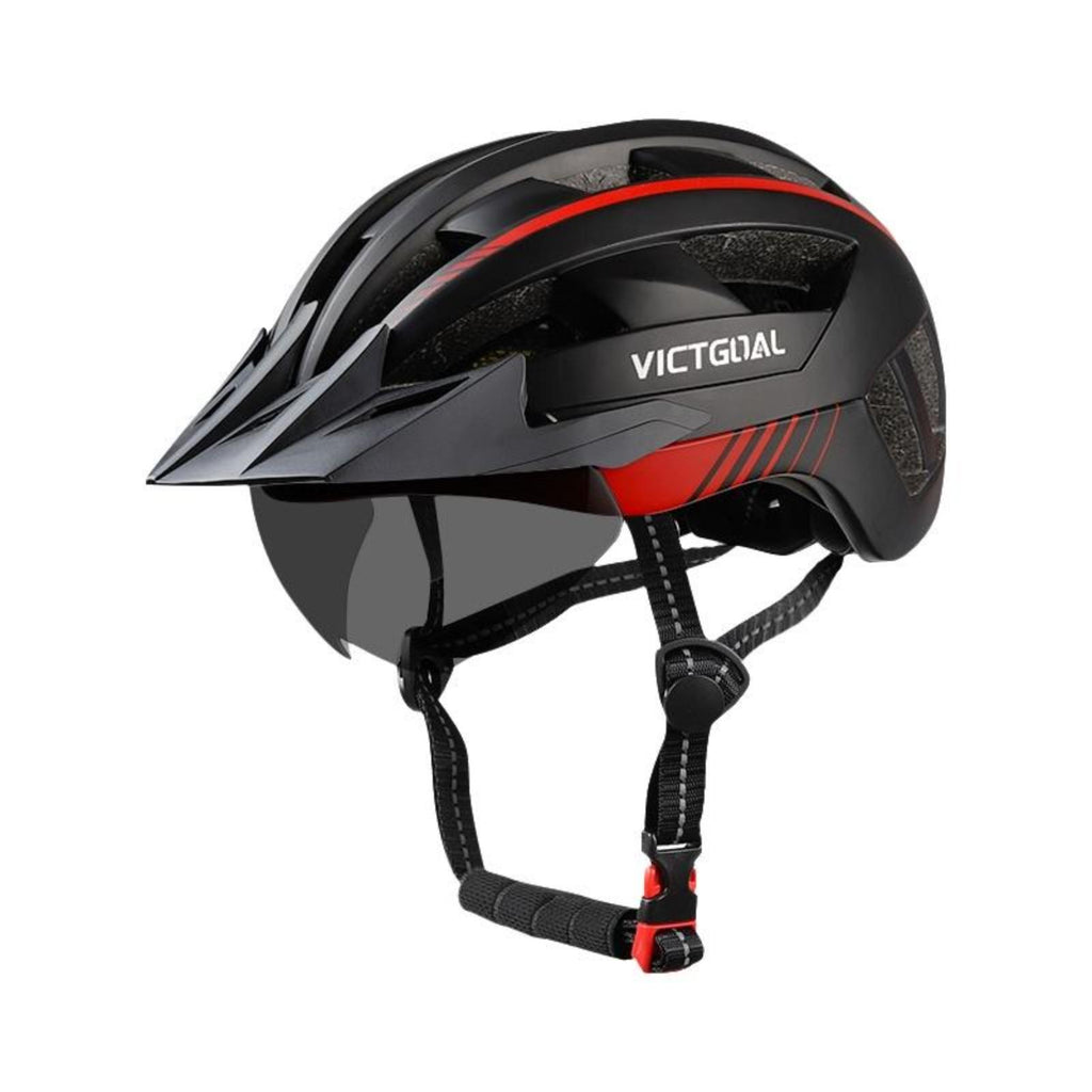 , Youth Cycling Helmet with Removable Goggle, Adjustable Fit, asphalt hillside XL Black Red